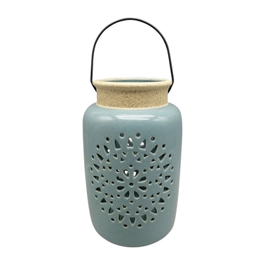 Ceramic Flower Cut Out Lantern 9" - Cameo Blue