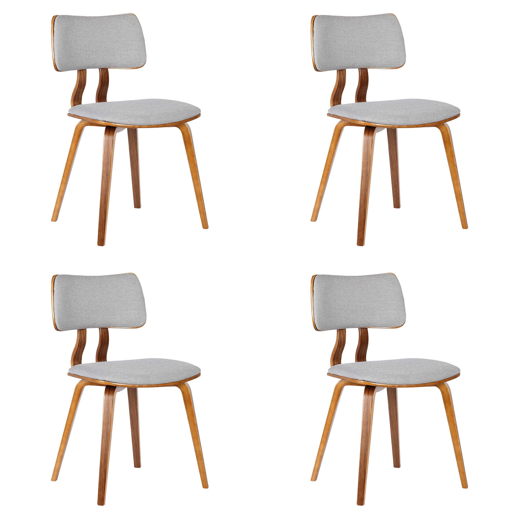 Jaguar - Mid-Century Dining Chair (Set of 4) - Walnut Wood And Gray Fabric