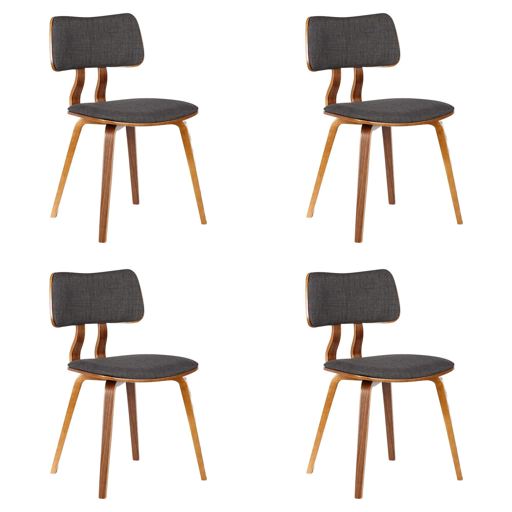 Jaguar - Mid-Century Dining Chair (Set of 4) - Walnut Wood And Charcoal Fabric