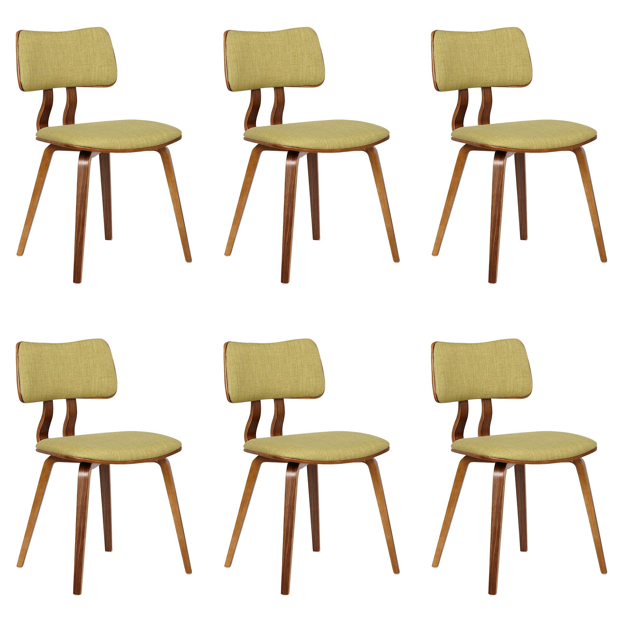 Jaguar - Mid-Century Dining Chair (Set of 6) - Walnut Wood And Green Fabric