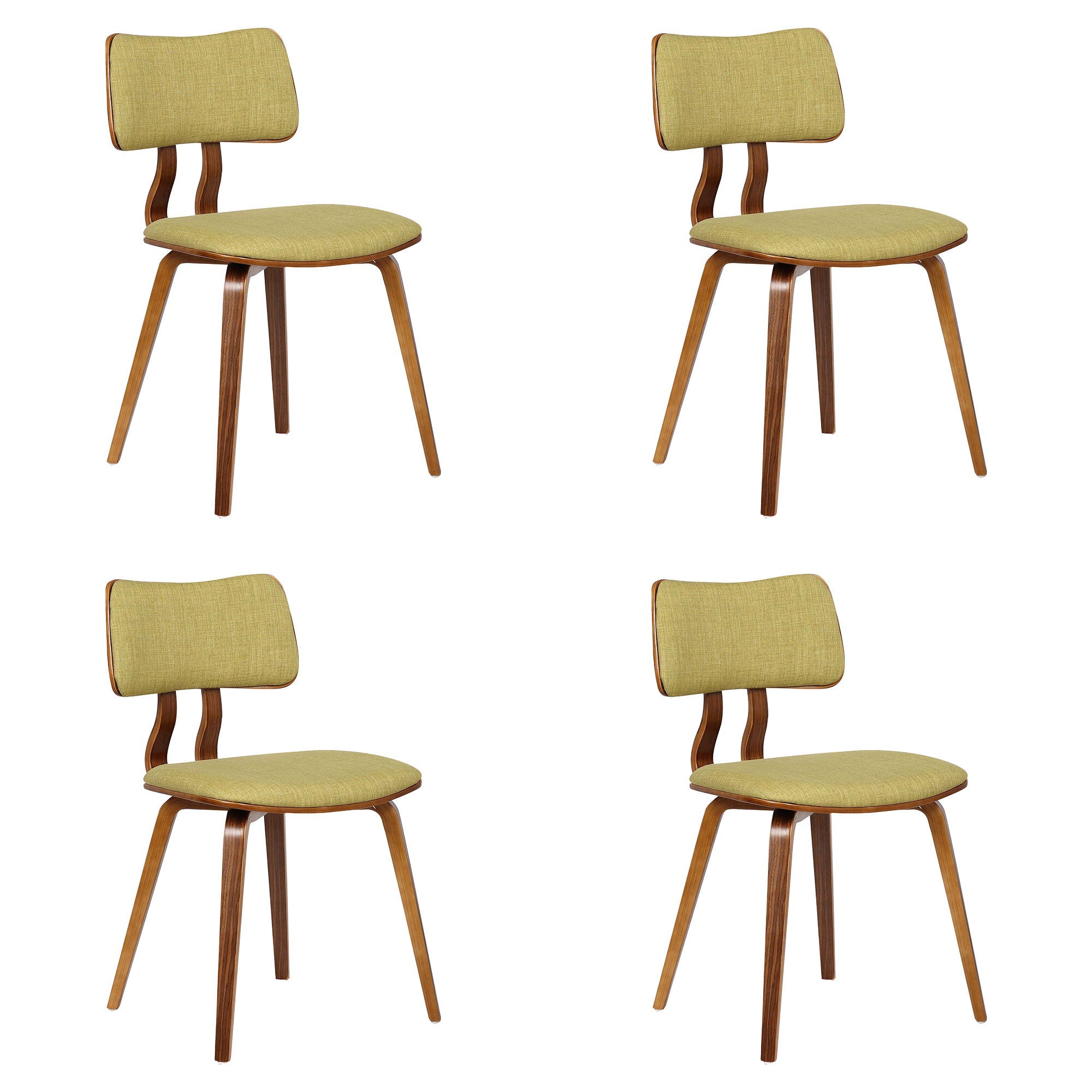Jaguar - Mid-Century Dining Chair (Set of 4) - Walnut Wood And Green Fabric