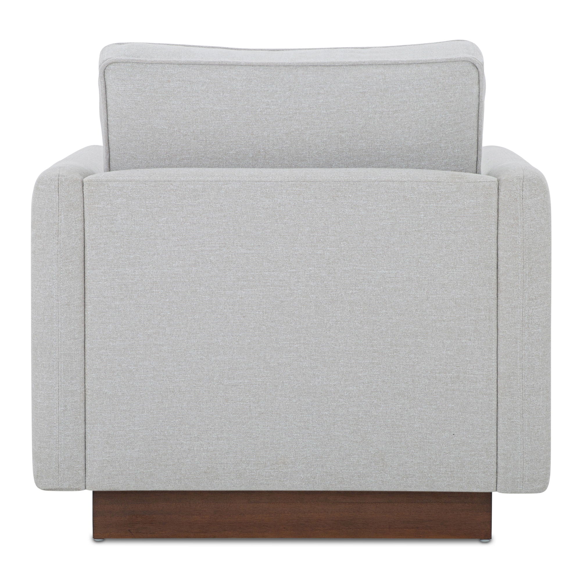 The Vernon accent chair blends mid-century design with modern functionality. It features a wooden plinth base for an elevated, lighter appearance. This chair offers unmatched comfort with removable cushions. Upholstered in durable, OEKO-TEX and Green Guard-certified fabric, it is ideal for family living, combining everyday practicality with durability.