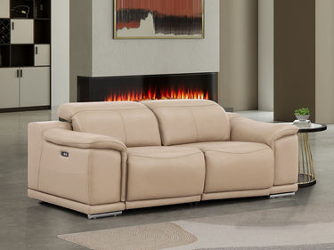 2679 - Genuine Leather Loveseat With Dual Power Recliners - Beige