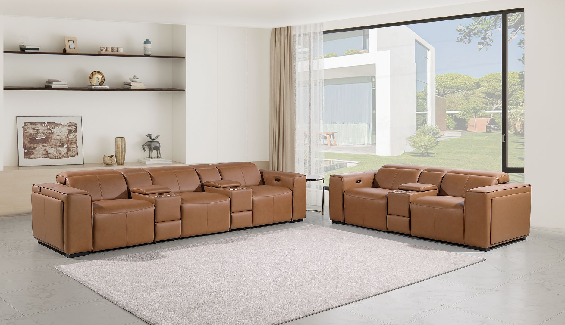 Upgrade your living space with this Top Grain Italian Leather Sofa and Loveseat Set, designed to blend modern functionality with timeless Italian craftsmanship. Upholstered in premium top-grain Italian leather, the set delivers a supple feel, exceptional durability, and a refined contemporary look. Between the sofa and loveseat, the set includes 4 motorized power recliners, each enhanced with power-adjustable headrests and built-in lumbar support—allowing you to personalize your comfort at the touch of a button. The integrated center console on the loveseat enhances practicality with cupholders, deep storage, a hidden drawer, and built-in USB ports and a power outlet inside—keeping remotes, accessories, and devices close at hand. Both pieces also feature hidden storage compartments on each side, with deep storage space and built-in cupholders for added convenience. For today’s lifestyle, the set includes USB charging ports and wireless phone chargers, ensuring your devices stay powered while you relax. Built on a solid steel frame for long-lasting strength and supported by solid wood legs, this sofa and loveseat set combines durability with contemporary style. Every stage of production, from design to assembly, is meticulously inspected to ensure world-class quality. Celebrated worldwide, Italian leather is renowned for its luxurious texture and enduring beauty. More than furniture, this sofa and loveseat set is a true lifestyle upgrade, transforming your living room or home theater into a sanctuary of comfort, innovation, and sophistication.