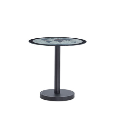 Offer the world at your finger tips, well at least a lay out of it, with the Boli side table. The glass top includes a map pattern, so no worries about coasters. The top sets on a healthy scaled post and thick round base. Brush up on your geography and get this table into the mix.