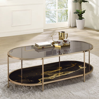 Fiorella - Coffee Table - Black Marble Print & Champagne