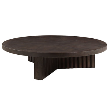 The Guido coffee table with its oak finish, exudes a blend of contemporary elegance and robust functionality. Featuring a fixed wooden table top and a round, oversized design, it is perfect for modern living spaces. The table's substantial presence and sleek lines make it an ideal centerpiece, offering both style and practicality.