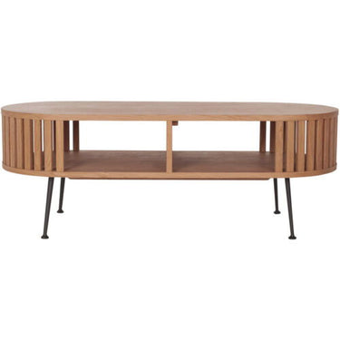 An entirely practical mid-century modern design with clean lines, tapered legs, and a gently rounded, smooth silhouette. This solid oak, lightly finished coffee table features gated paneling that details its spacious storage areas. A beautiful nod to 1950s décor, this versatile style works from room to room, centerfold as a coffee table or under the window with plants and sunlight.