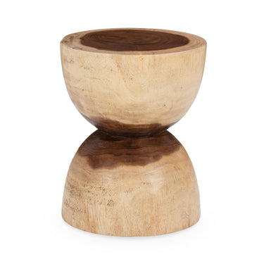 Ground your space with this bold, earthy teak wood end table. Its substantial hourglass profile and natural wood grain command attention, bringing warmth and texture to rustic interiors. Desire a functional focal point? Perfect as a wood side table or accent piece in lodge, cabin, or rustic farmhouse settings. Enrich your decor with this enduring solid teak wood table, built for beauty and longevity.