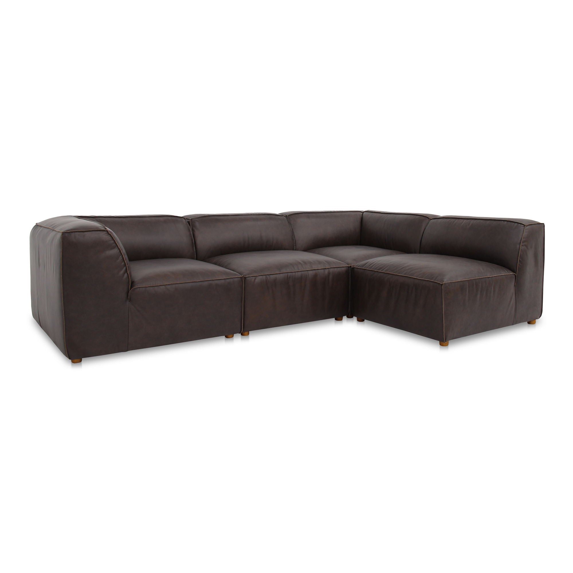 Configure the Form modular sectional into a collage of comfort as the collection includes slipper and corner chairs, as well as an ottoman. Contemporary in both style and function, Form features top-grain leather upholstery that will age into a beautiful patina, reverse stitching accents throughout, and emphasis placed on its plump, slightly rounded silhouette with feather and fiber-fill cushioning.