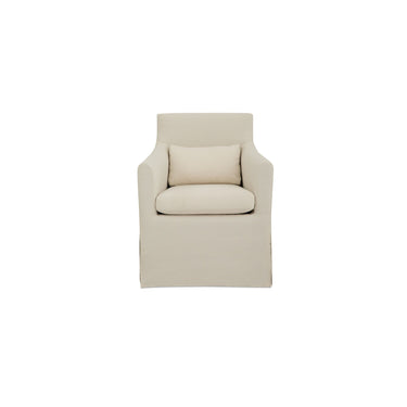 - Defined form: Curved armrests and an inverted-pleat slipcover create a structured, traditional profile, adding tailored detail that translates effortlessly into modern outdoor dining settings.