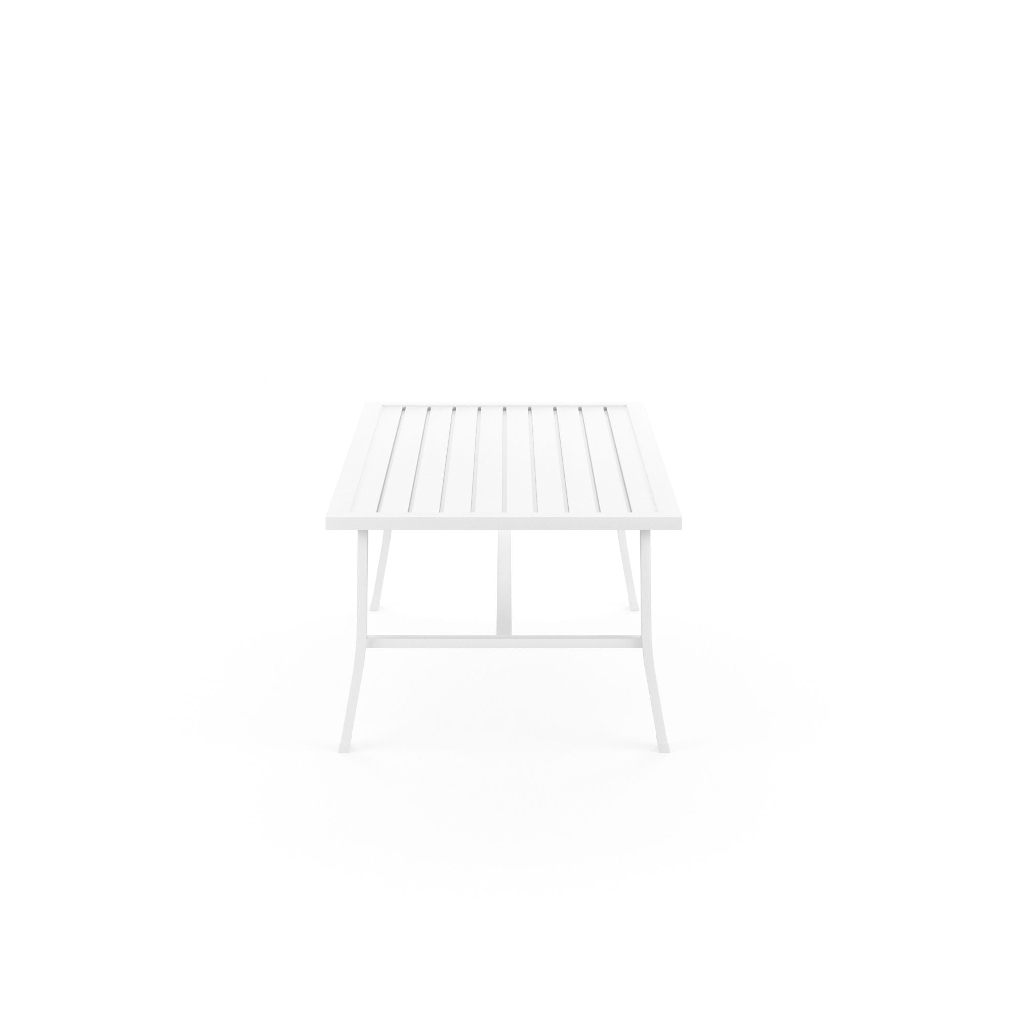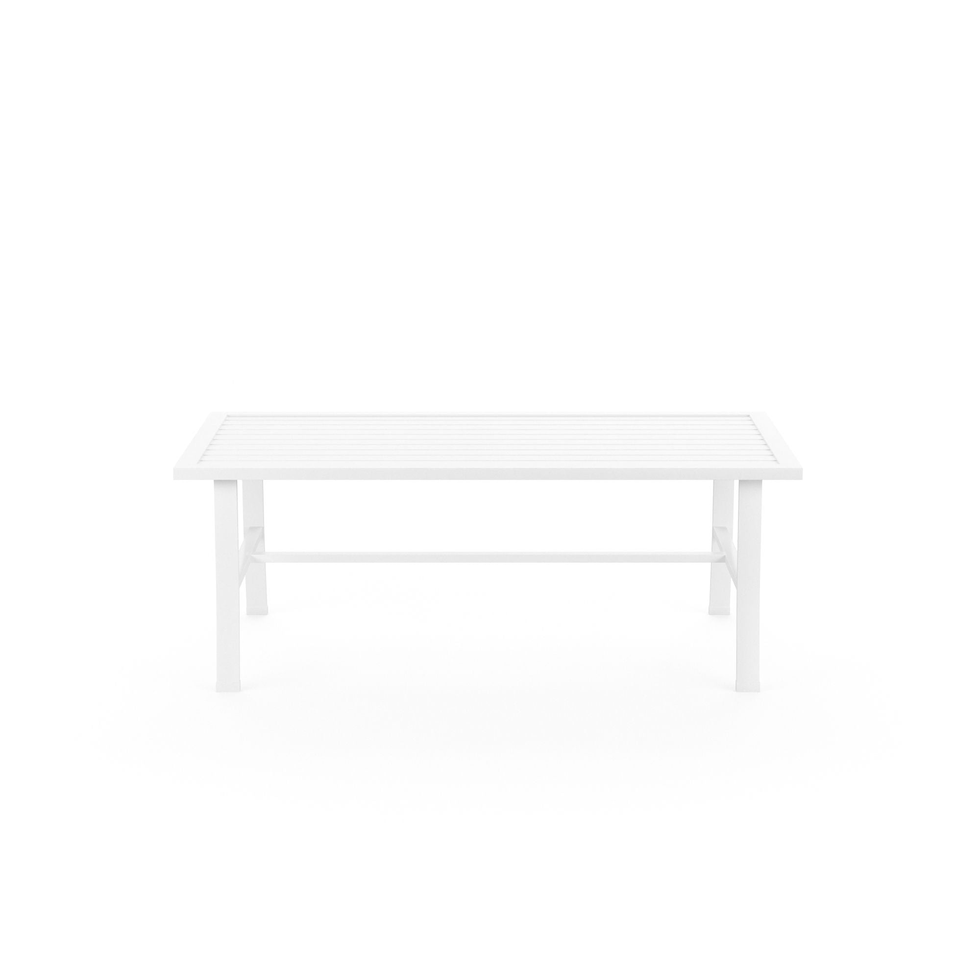 Sunset West's transitional Bristol Coffee Table is rendered in high quality, low-maintenance aluminum that will stand the test of time. This Coffee Table features a slatted top with subtly flared channel legs. Bristol is a part of the Frost White color story, and coordinates well with Venice, and pieces from the Bazaar.