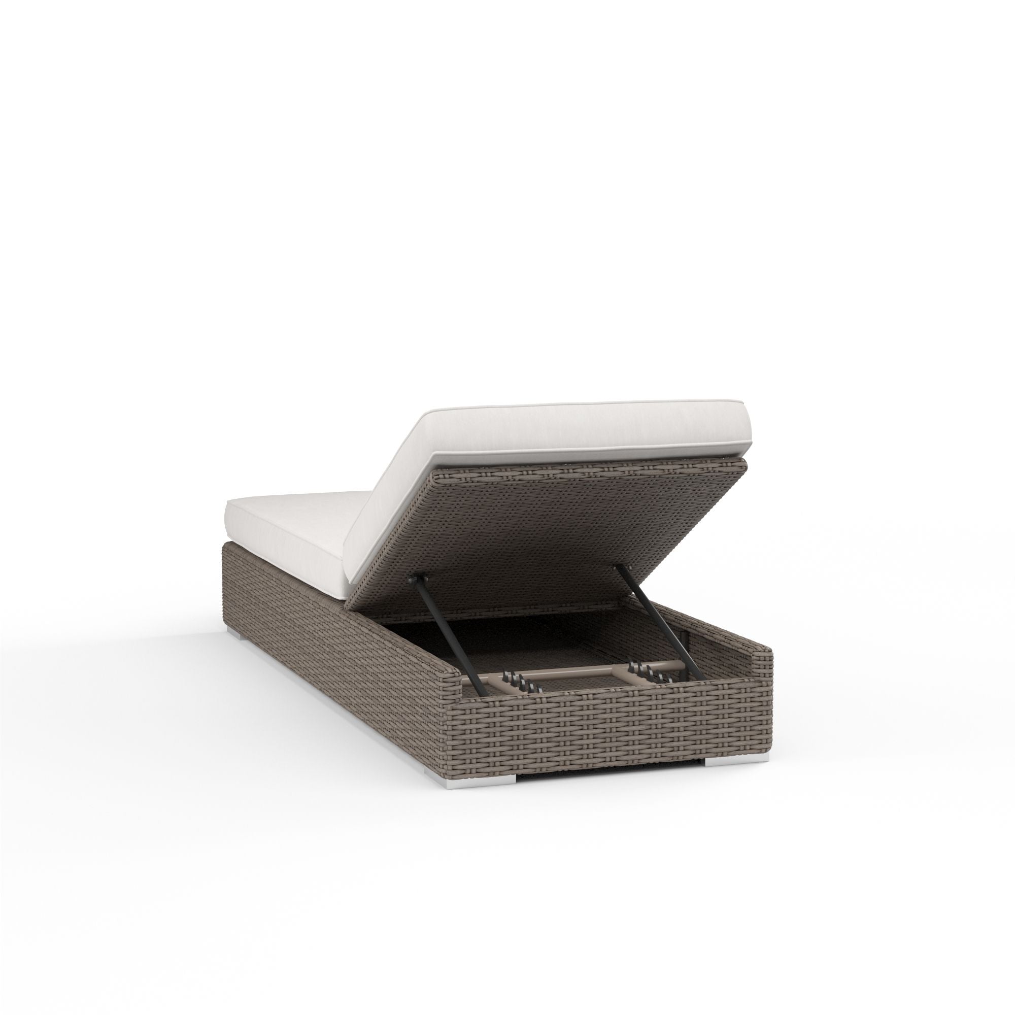 Sunset West's Coronado Adjustable Chaise embodies casual sophistication for a wonderfully versatile look. Transitional lines are wrapped in a beautiful resin wicker finish in Driftwood. Outstanding comfort is provided with plush, fast drying cushions and 5 adjustable seating positions.