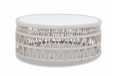 The Dana Coffee Table is the perfect balance between intricate pattern and organic lines. This table features a honed natural Carrara marble top, and expertly wrapped base in premium all-weather olefin rope in natural Linen color. Wrapped in weather-resistant, colorfast rope in Natural Linen Natural honed Carrera stone top Dana is a part of the Natural Color Story, and works well with Coastal Teak, Laguna, and items from the Bazaar.
