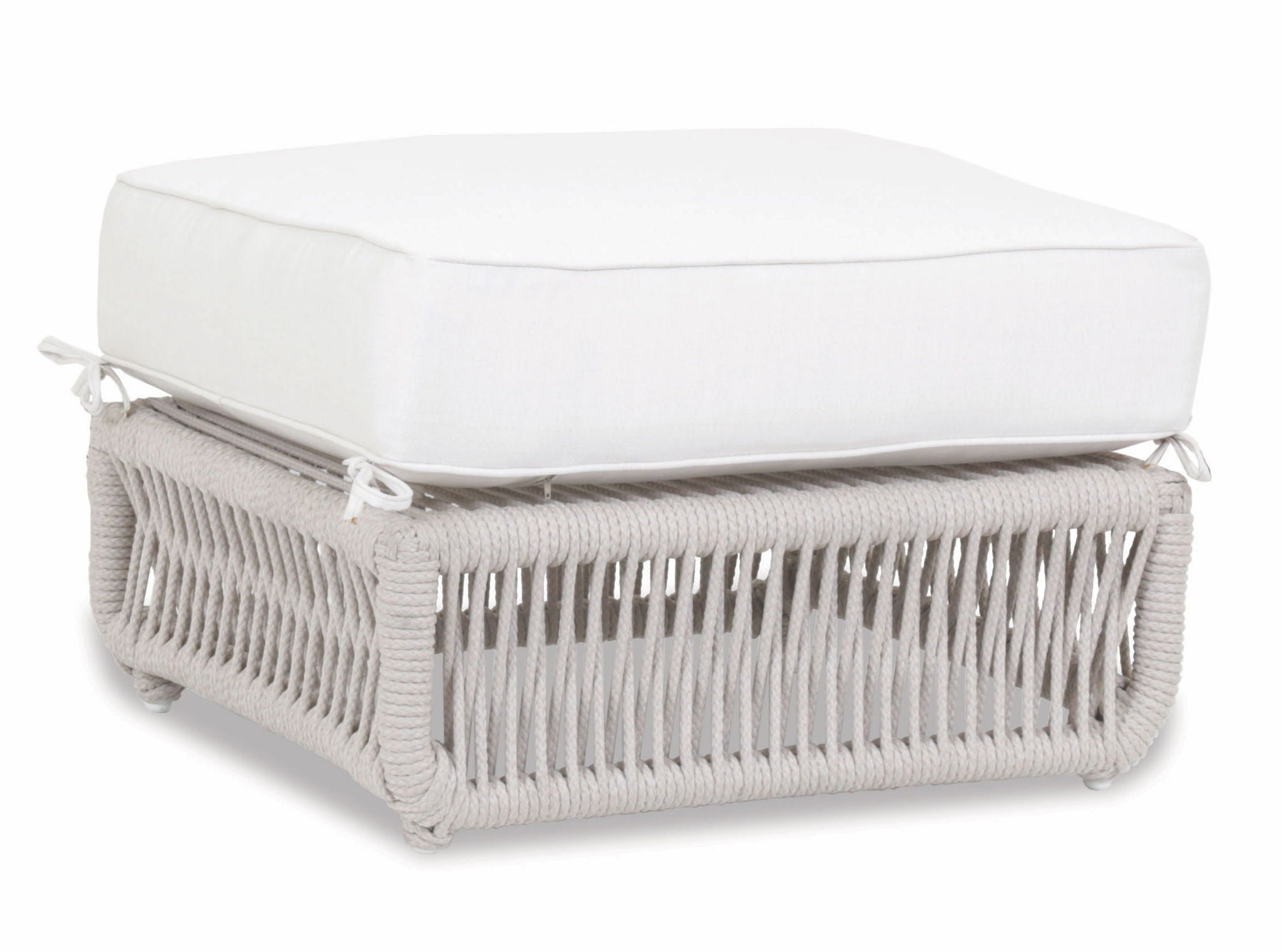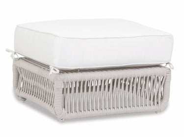 Featuring a plush 6" cushion, The Dana Ottoman is styled with a box frame expertly wrapped in premium all-weather olefin rope in natural Linen. Fully welded powder-coated aluminum frame Wrapped in weather-resistant, colorfast rope in Natural Linen Weather resistant, high-resiliency foam cushions Stocked in Premium Sunbrella fabric in Linen Canvas Non-marking plastic glides Commercial Quality Construction Custom Cushions available in approx. 4 weeks. Dana is a part of the Natural Color Story, and works well with Coastal Teak, Laguna, and items from the Bazaar.