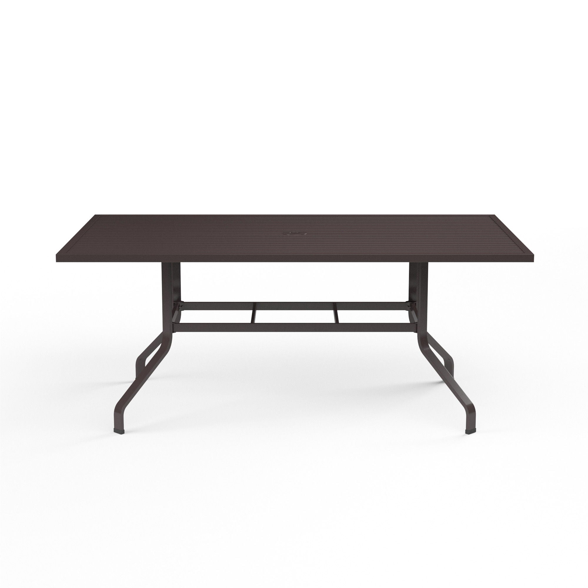 Sunset West's classic La Jolla Rectangular Dining Table is rendered in high quality, low-maintenance aluminum that will stand the test of time. This Dining Table features a slat top with umbrella hole, and curved channel legs. La Jolla is a part of the Espresso color story, and coordinates well with Venice, and pieces from the Bazaar.