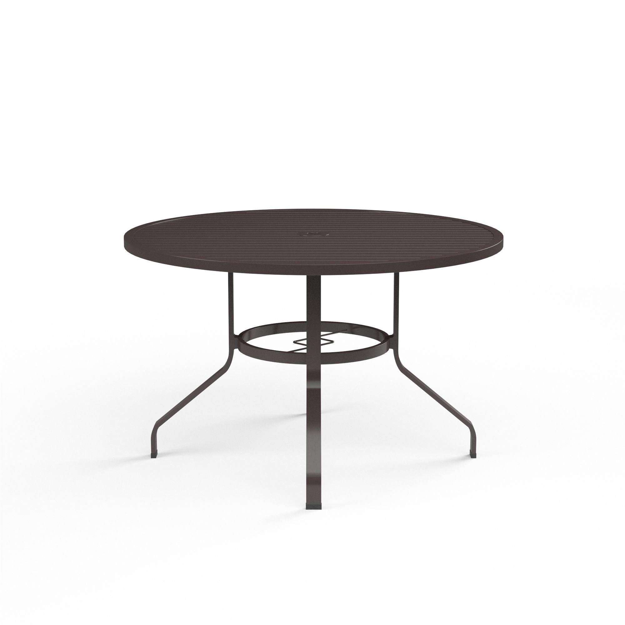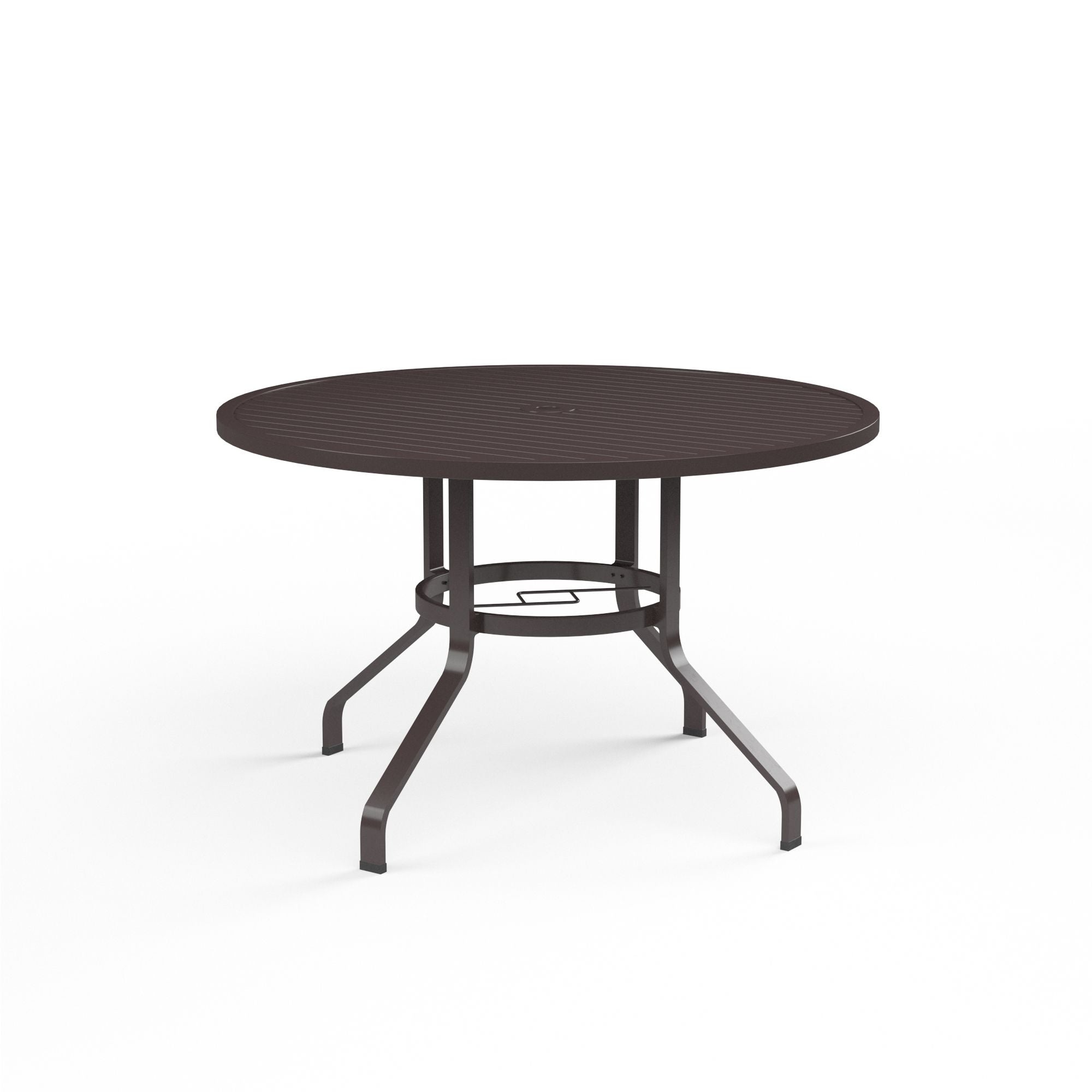 Sunset West's classic La Jolla Round Dining Table is rendered in high quality, low-maintenance aluminum that will stand the test of time. This Dining Table features a slat top with umbrella hole, and curved channel legs. La Jolla is a part of the Espresso color story, and coordinates well with Venice, and pieces from the Bazaar.