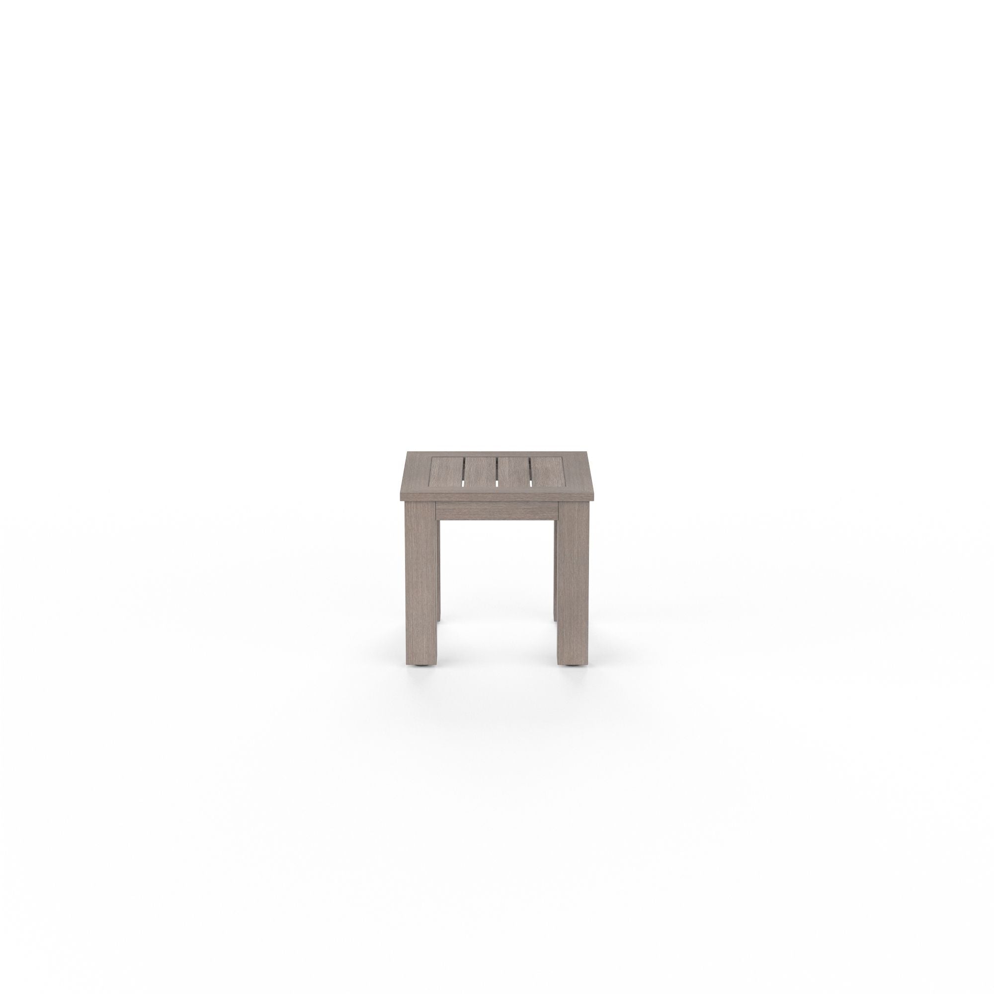 A re-imagination of materials, the Laguna collection from Sunset West embodies effortlessly stylish living. Crafted in lasting aluminum, with a hand-brushed finish to mimic real driftwood, Laguna captures a timeless look with modern sensibility offering the look and feel of natural wood, with minimal maintenance. The Laguna End Table is styled with tailored plank top and block legs in our signature driftwood finish. Hand-Brushed Driftwood Finish Adjustable Feet Laguna is a part of the Driftwood color story, and coordinates well with Coronado, Manhattan, and Havana.