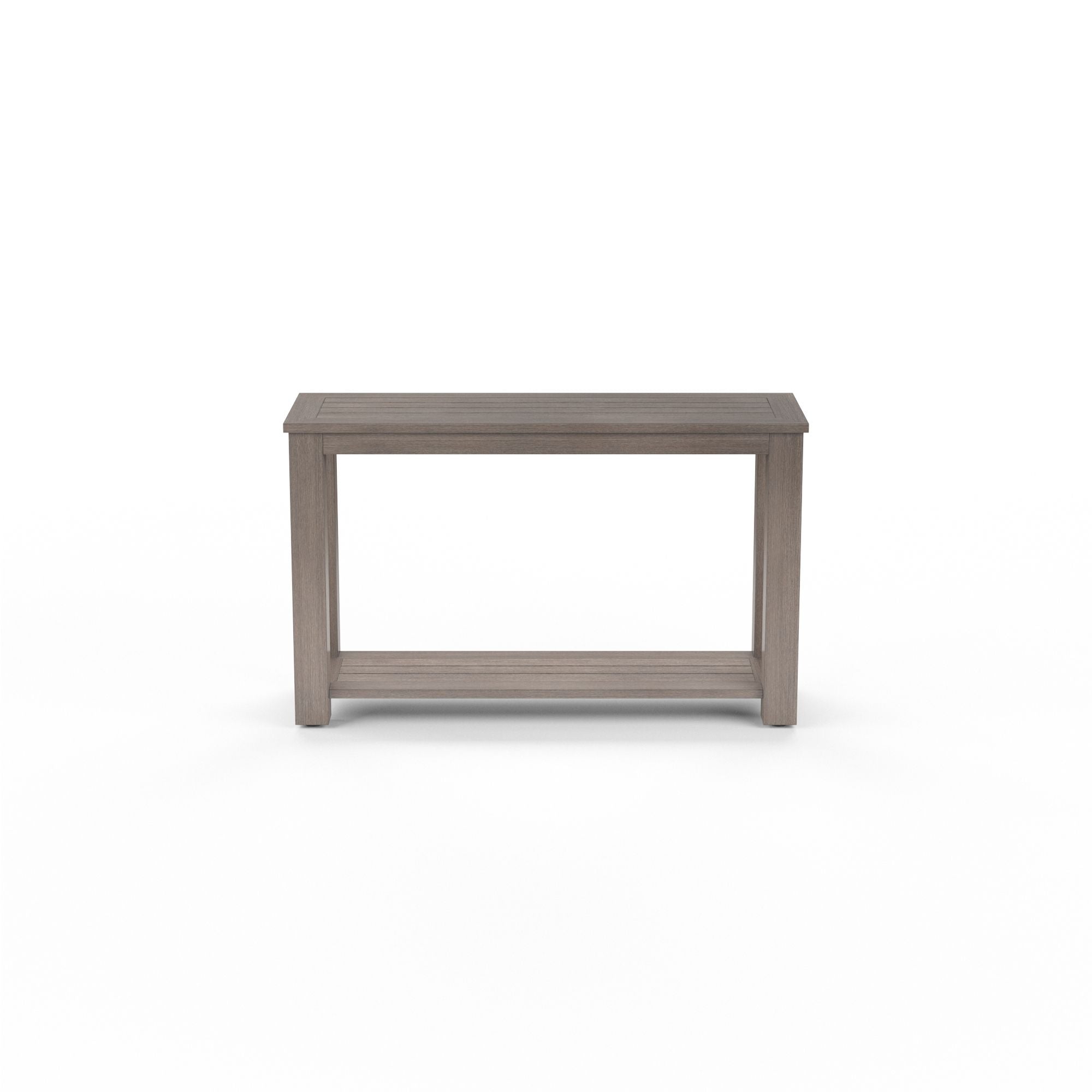 A re-imagination of materials, the Laguna collection from Sunset West embodies effortlessly stylish living. Crafted in lasting aluminum, with a hand-brushed finish to mimic real driftwood, Laguna captures a timeless look with modern sensibility Ð offering the look and feel of natural wood, with minimal maintenance. The Laguna Sofa Table is styled with tailored plank top and block legs in our signature driftwood finish. Hand-Brushed Driftwood Finish Adjustable Feet Laguna is a part of the Driftwood color story, and coordinates well with Coronado, Manhattan, and Havana.
