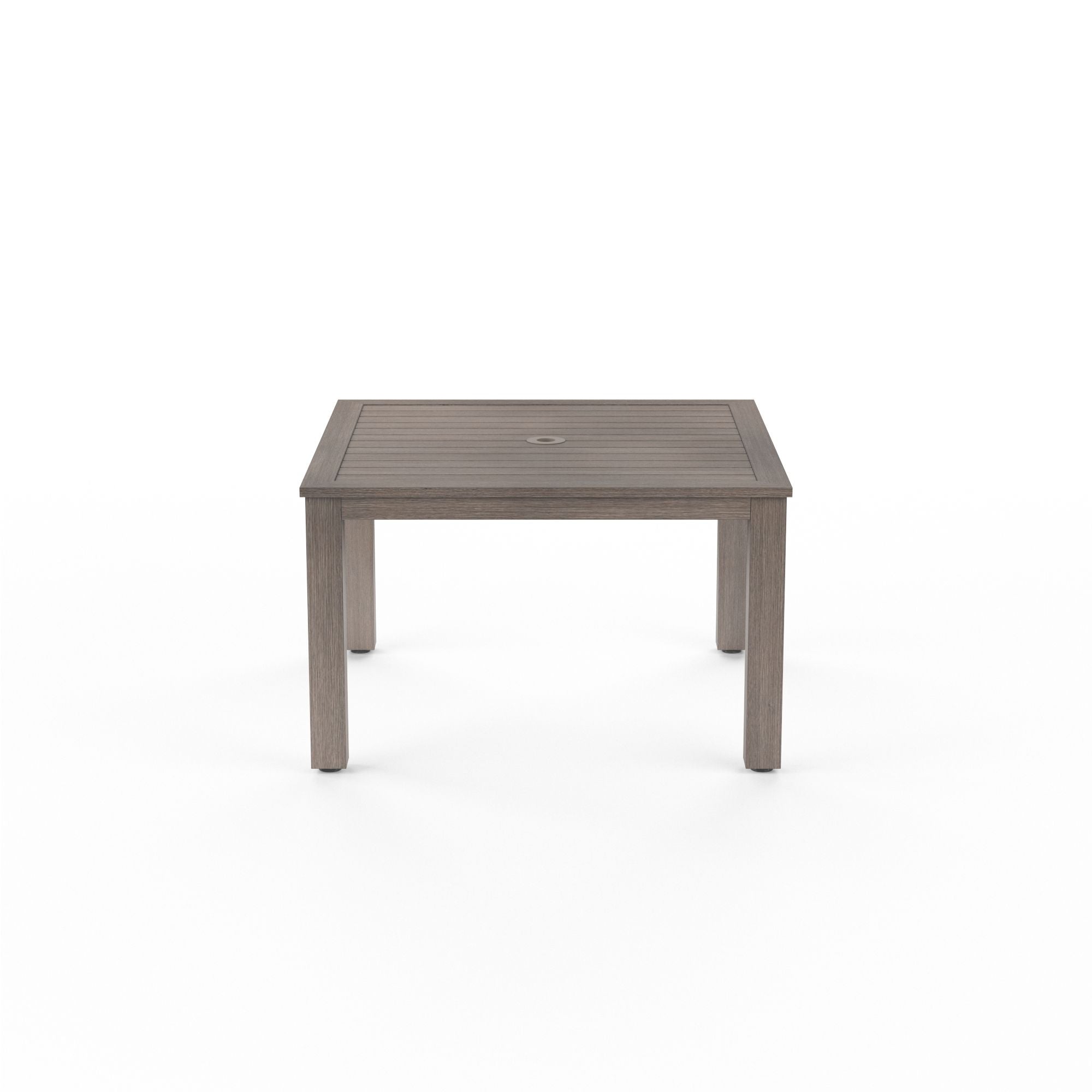 A re-imagination of materials, the Laguna collection from Sunset West embodies effortlessly stylish living. Crafted in lasting aluminum, with a hand-brushed finish to mimic real driftwood, Laguna captures a timeless look with modern sensibility offering the look and feel of natural wood, with minimal maintenance. The Laguna Dining Table is styled with tailored plank tabletop and classic Parsons silhouette. Hand-Brushed Driftwood Finish Adjustable Feet Umbrella hole and cap included Laguna is a part of the Driftwood color story, and coordinates well with Coronado, Manhattan, and Havana.