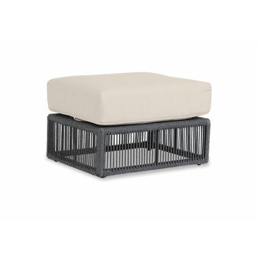 The Milano Ottoman is rendered with a box aluminum frame, expertly hand-wrapped by artisans with premium all-weather olefin rope in a charcoal-grey. Stocked with a plush 6" cushion for supreme comfort. Fully welded, powder coated aluminum frame Wrapped in weather-resistant, colorfast outdoor rope Weather resistant, high-resiliency foam cushions Stocked in Premium Sunbrella fabric in Echo Ash Non-marking plastic glides Commercial Quality Construction Milano is part of the Slate color story, and pairs well with Redondo, Granite occasional and fire tables, and other items from the Bazaar.