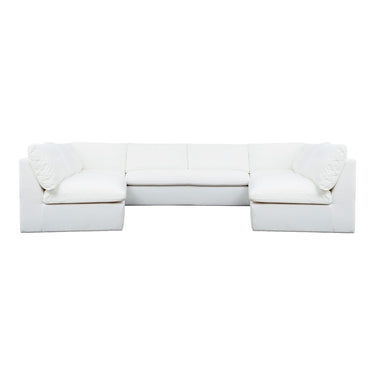The Miles outdoor modular offers the comfort of indoor furniture with the durability of outdoor design. This modular features a sturdy aluminum frame and is upholstered in fade-resistant 100% Olefin fabric. The quick-dry foam ensures fast recovery after wet weather, providing a consistently comfortable seating experience.