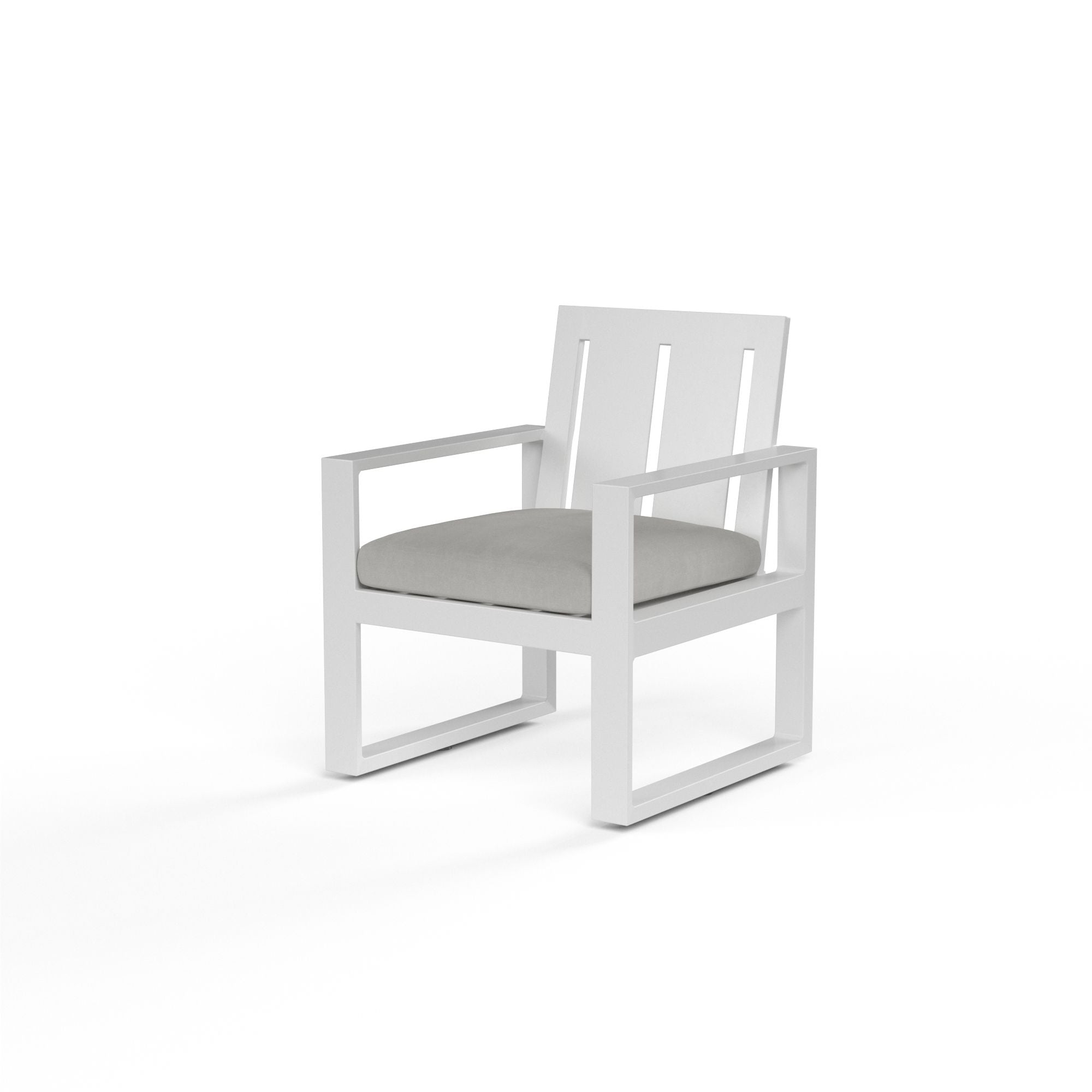 The Newport Dining Chair blends modern and industrial sensibly into one striking design, featuring a wide slat back and linear frame, crafted in powder coated aluminum with a Satin White finish.