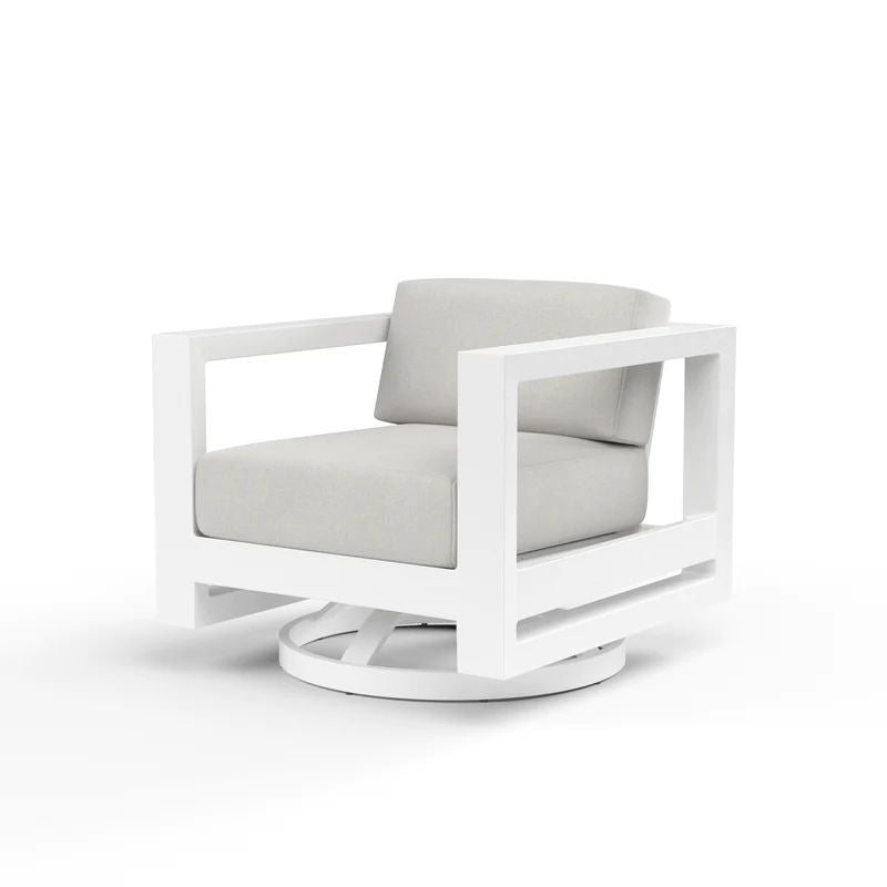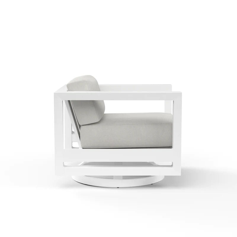The Newport Swivel Club Chair introduces smooth motion to one of our most popular silhouettes. Informed by mid-century design elements, the Newport features a low back and smart, linear frame. Crafted in powder coated aluminum in a Frost finish.