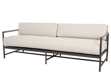 Informed by mid-century design, the Pietra Sofa incorporates the best of classic proportions with modern materials. Inspired by the subtle tones of natural stone, this piece is rendered in a matte Graphite aluminum with vary-colored Shale all-weather rope. It features a rounded tube frame and mid-rise back, that is perfectly scaled for smaller spaces and casts a compelling profile. Fully welded, scratch-resistant powder-coated aluminum frame in Graphite Finish Wrapped in weather-resistant colorfast rope in Stone grey Weather resistant, high-resiliency foam cushions Stocked in Premium Sunbrella fabric in Echo Ash Non-marking plastic glides Commercial Quality Construction Custom Cushions available in approx. 4 weeks. Pietra is a part of the Stone color story, and blends well Marbella, Mesa, and items from the Bazaar.