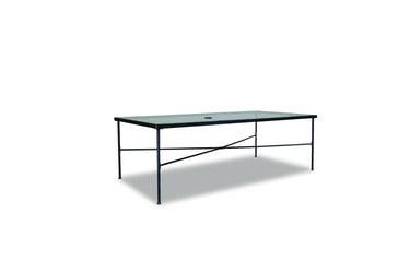 Constructed in expertly crafted wrought iron, the Provence 84" Dining Table displays a tempered glass top and elegantly brushed Century Pewter antique finish. Complete the look with Provence Dining Chairs, or mix with other complimentary collections from Sunset West. Wrought Iron frame with 5 step finish process Table Top is 10mm Tempered Glass with an Umbrella Hole Provence is part of the Classic color story and adds a timeless touch when paired with Coronado and many other Sunset West collections.