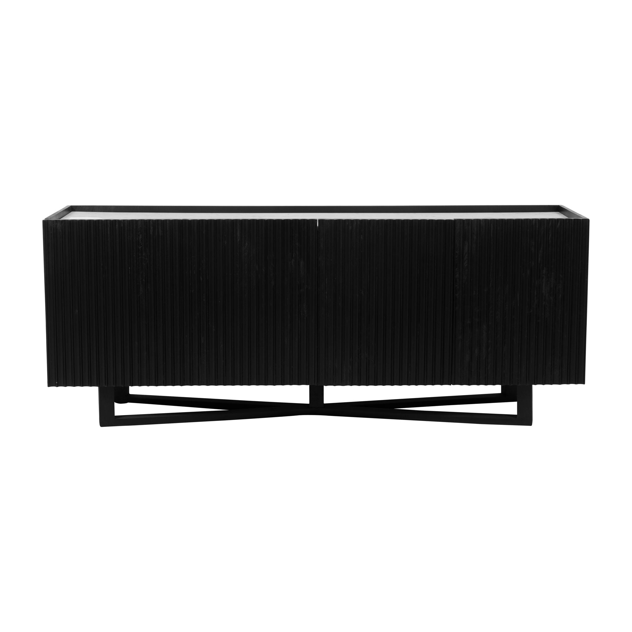 Wood / Marble 4-Door Fluted Sideboard 69" - Black