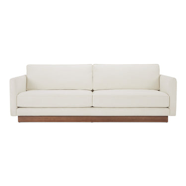 The Vernon sofa blends mid-century design with modern functionality. It features a wooden plinth base for an elevated, lighter appearance. This sectional offers unmatched comfort with removable cushions. Upholstered in durable, OEKO-TEX and Green Guard-certified fabric, it is ideal for family living, combining everyday practicality with durability.