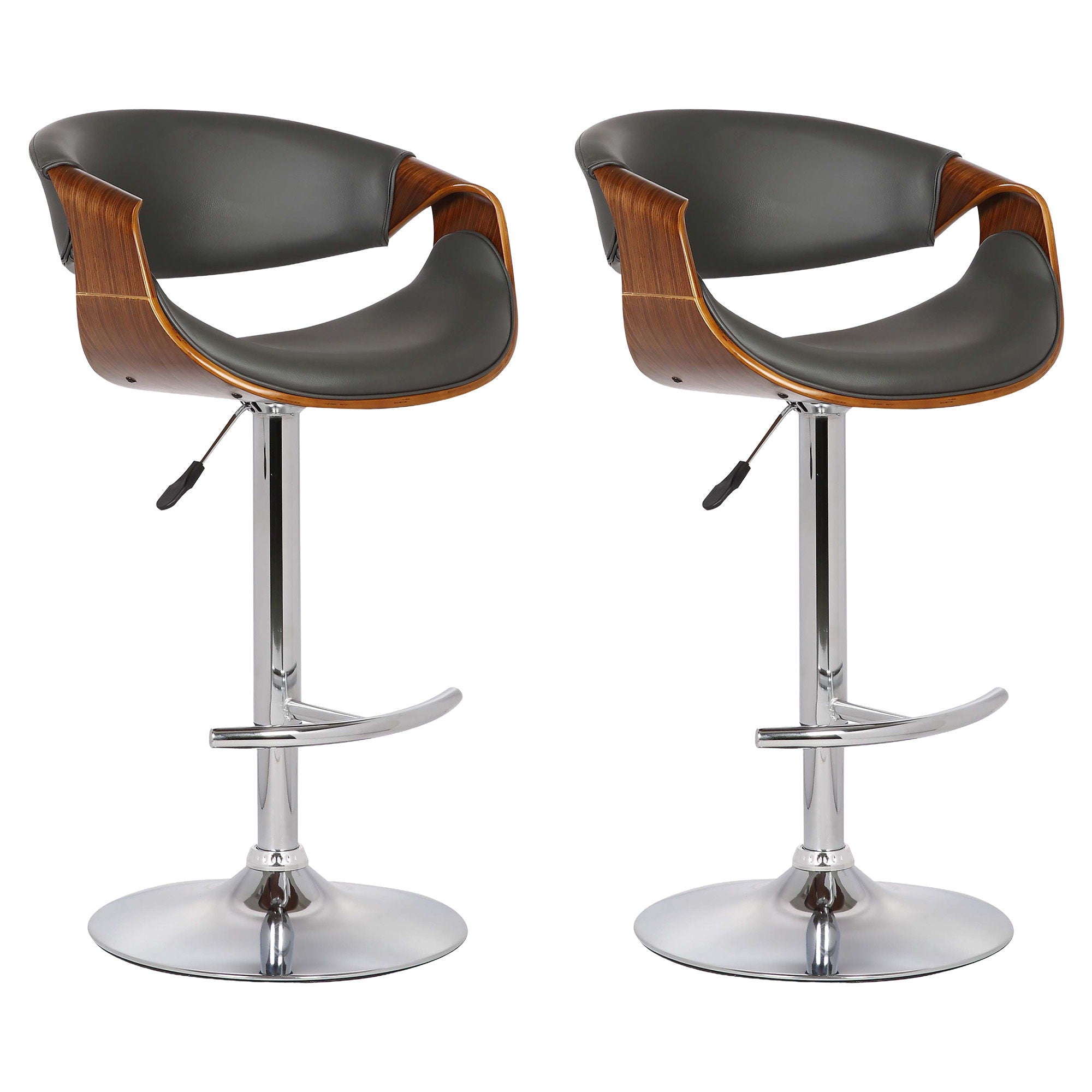 Butterfly - Adjustable Height Swivel Bar Stool With Chrome Base (Set of 2) - Gray Faux Leather And Walnut Wood