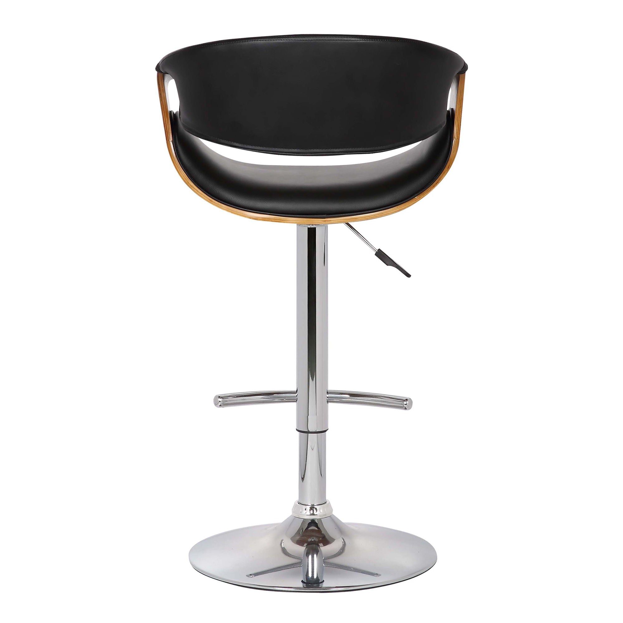 Butterfly - Adjustable Height Swivel Bar Stool With Chrome Base (Set of 4) - Black Faux Leather And Walnut Wood