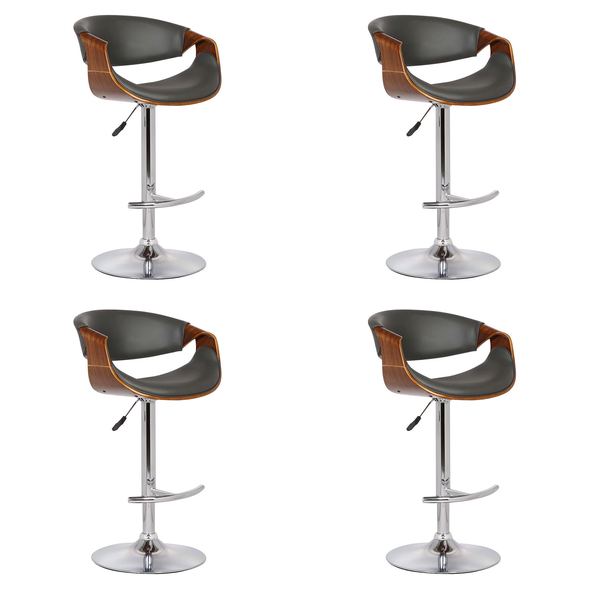 Butterfly - Adjustable Height Swivel Bar Stool With Chrome Base (Set of 4) - Gray Faux Leather And Walnut Wood