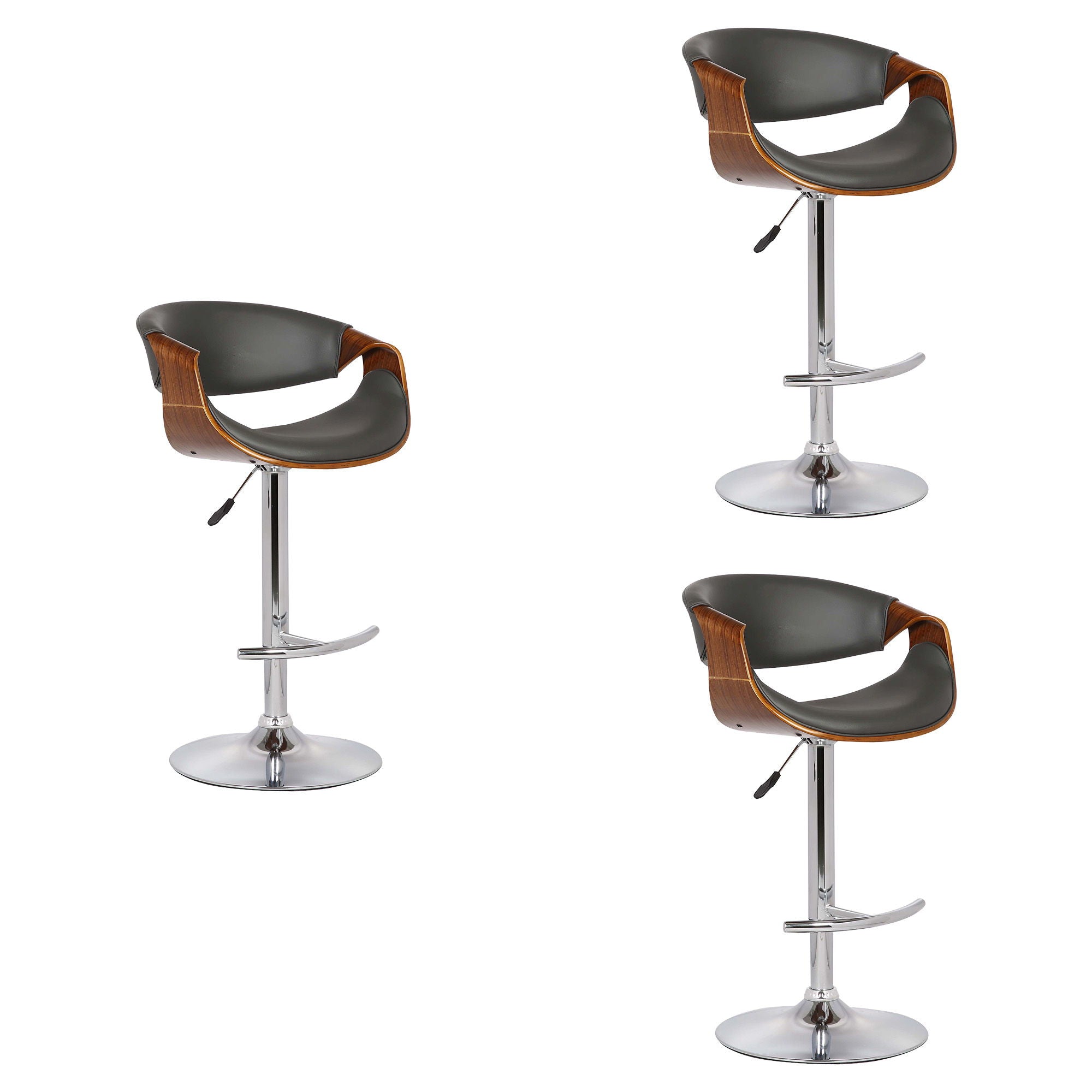 Butterfly - Adjustable Height Swivel Bar Stool With Chrome Base (Set of 3) - Gray Faux Leather And Walnut Wood