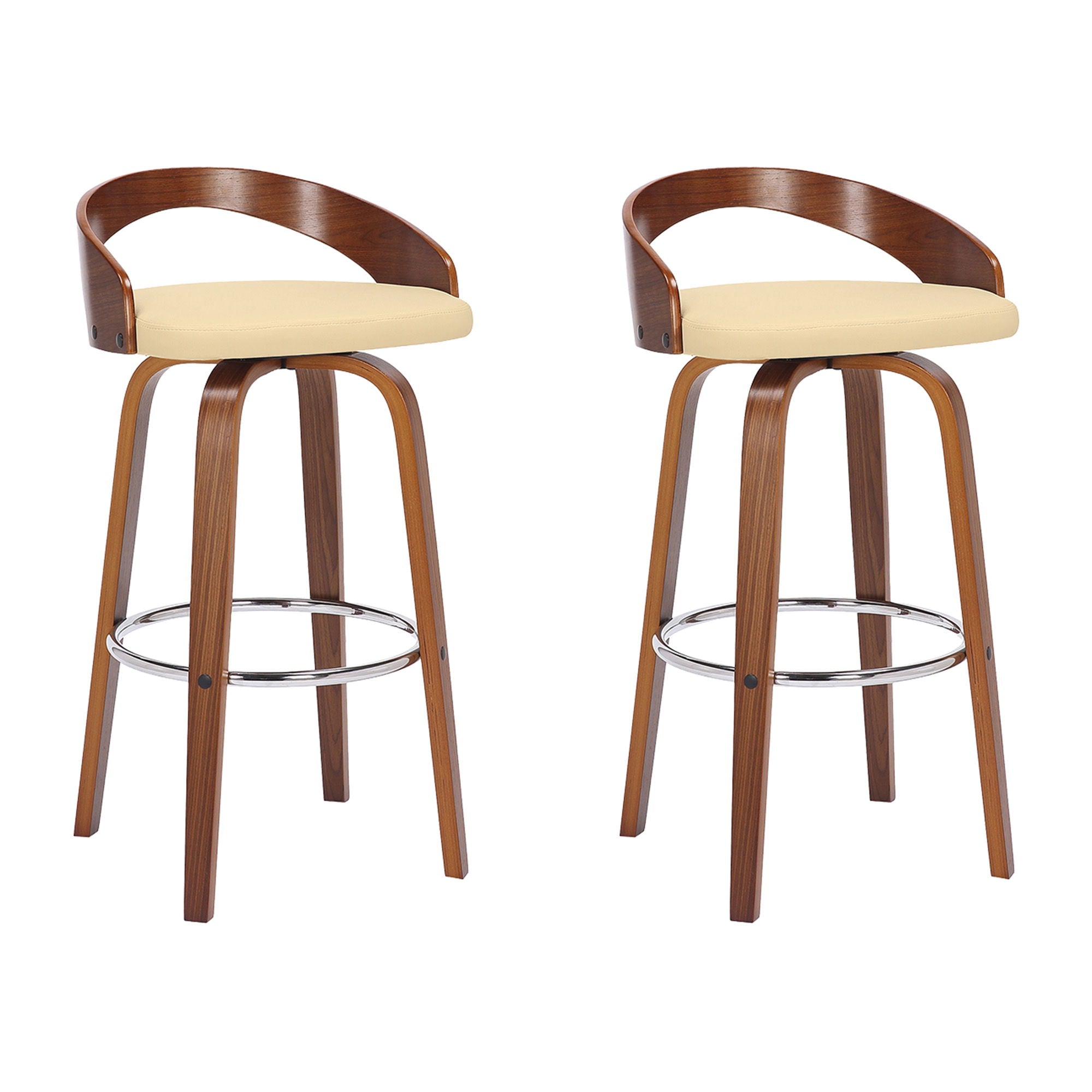 Sonia - 30" Bar Height Swivel Bar Stool (Set of 2) - Cream Faux Leather And Walnut Wood