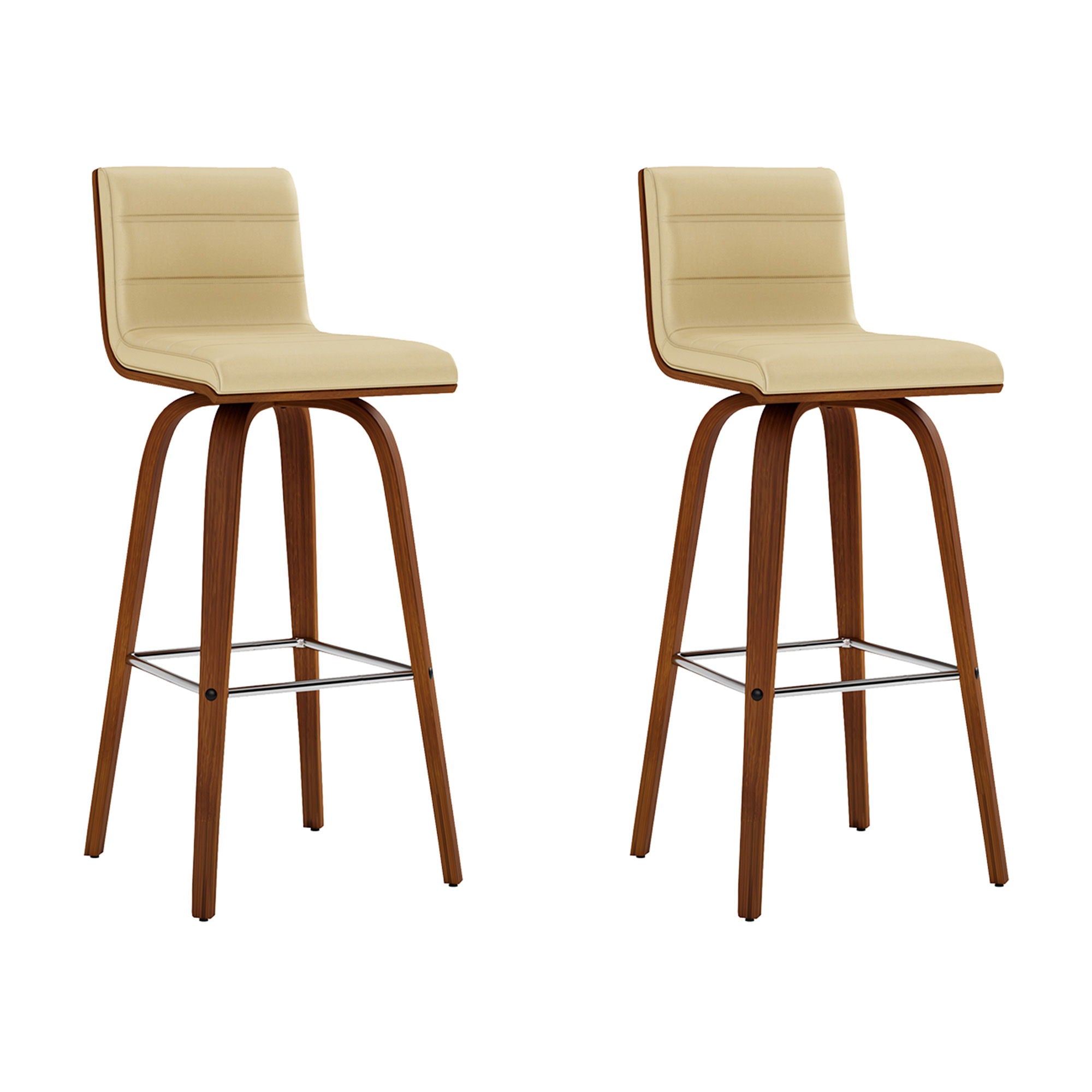 Vienna - 30" Swivel Bar Stool (Set of 2) - Walnut Wood Finish With Cream Faux Leather