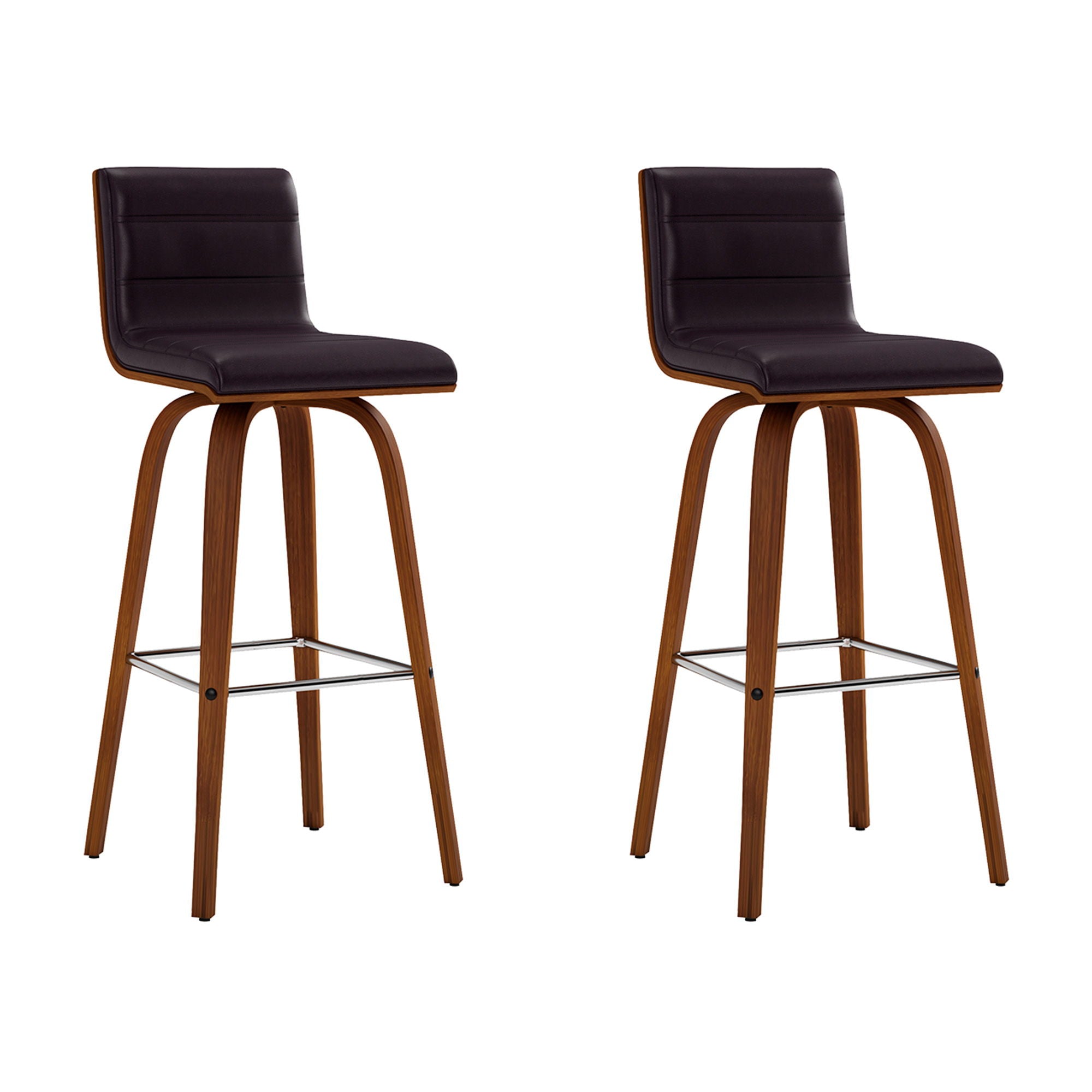 Vienna - 30" Swivel Bar Stool (Set of 2) - Walnut Wood Finish With Brown Faux Leather