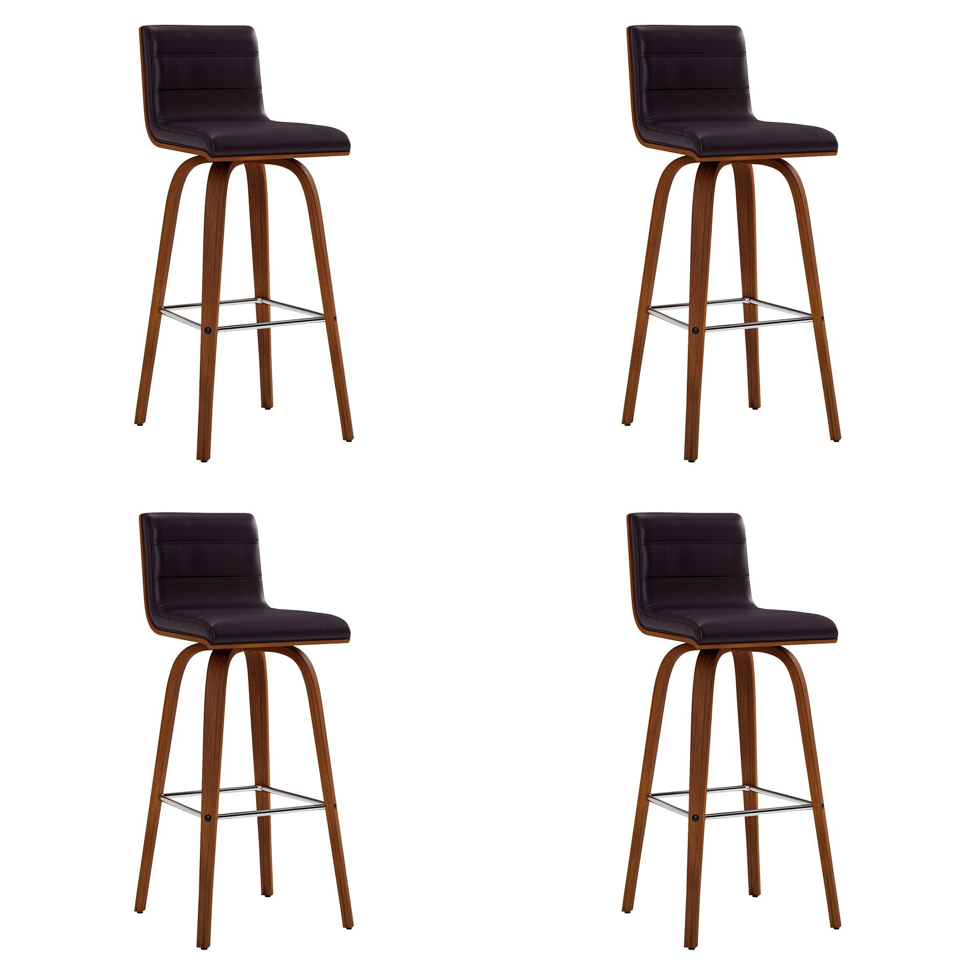 Vienna - 30" Swivel Bar Stool (Set of 4) - Walnut Wood Finish With Brown Faux Leather