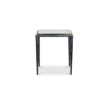 - Cast Glass with Contrast: A substantial slab of textured cast glass with organic veining rests upon a hand-forged, hammered iron frame.