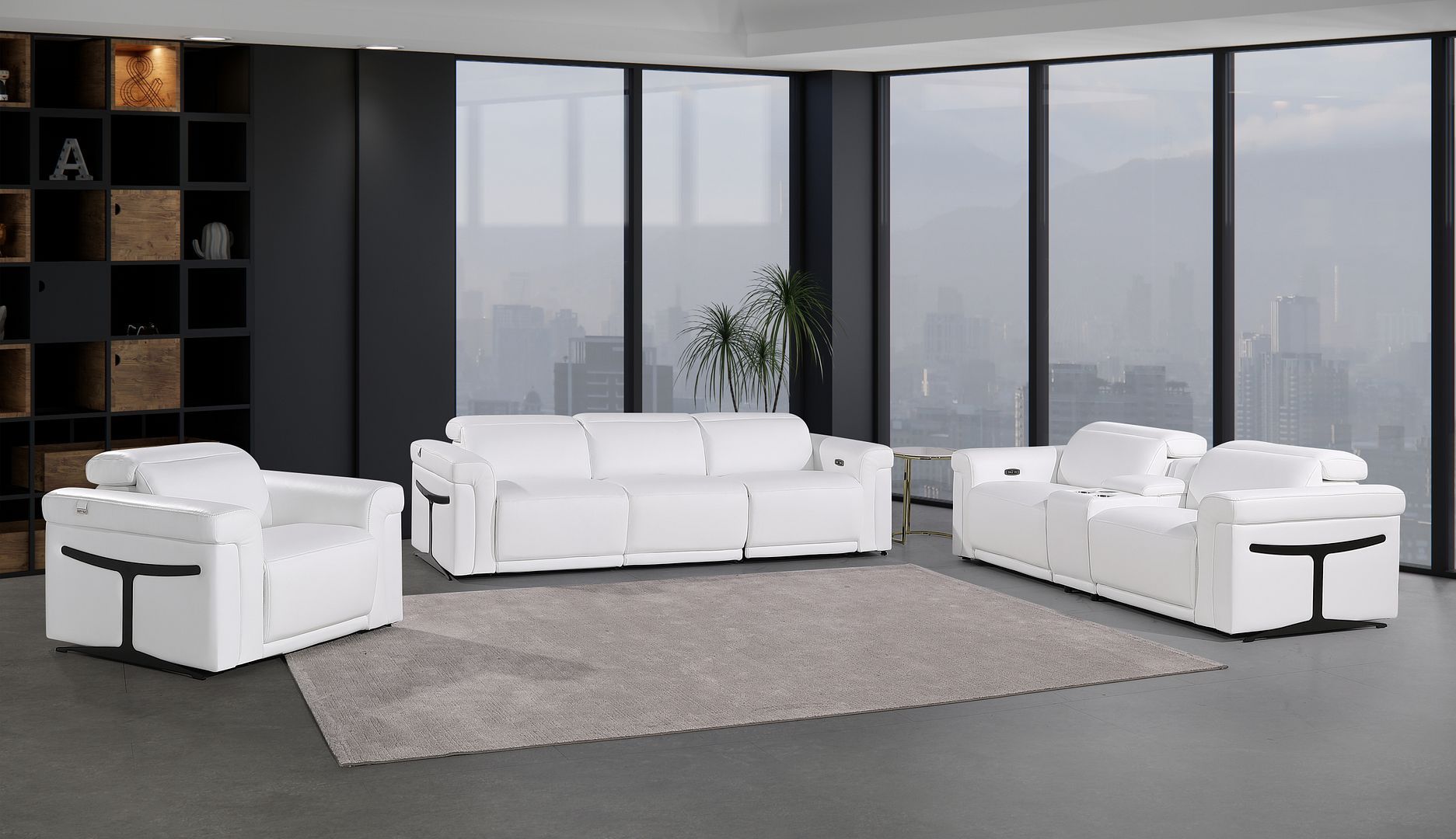 1126 - 7-Piece Modular Power Reclining Sofa, Loveseat & Chair Set In With 6 Power Recliners & Power Headrests - White