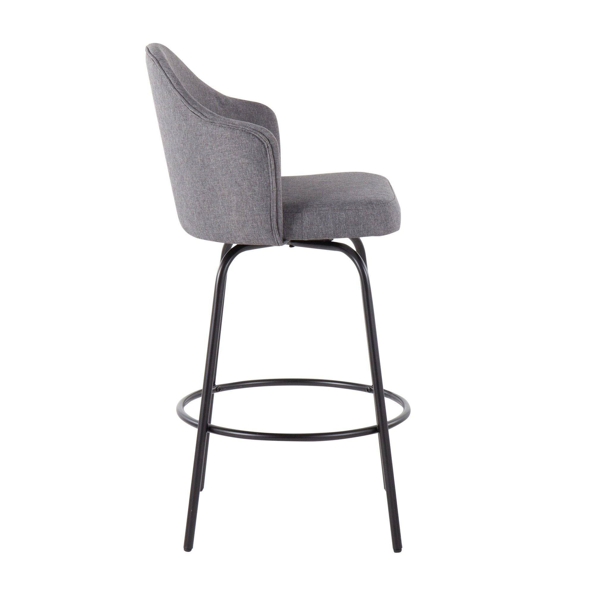 The contemporary charm of the Ahoy Counter Stool by LumiSource combines sturdy construction with aesthetic appeal. Sleek fabric upholstery is accented by black metal legs and a swivel seat. Available in a variety of color and pattern combinations.