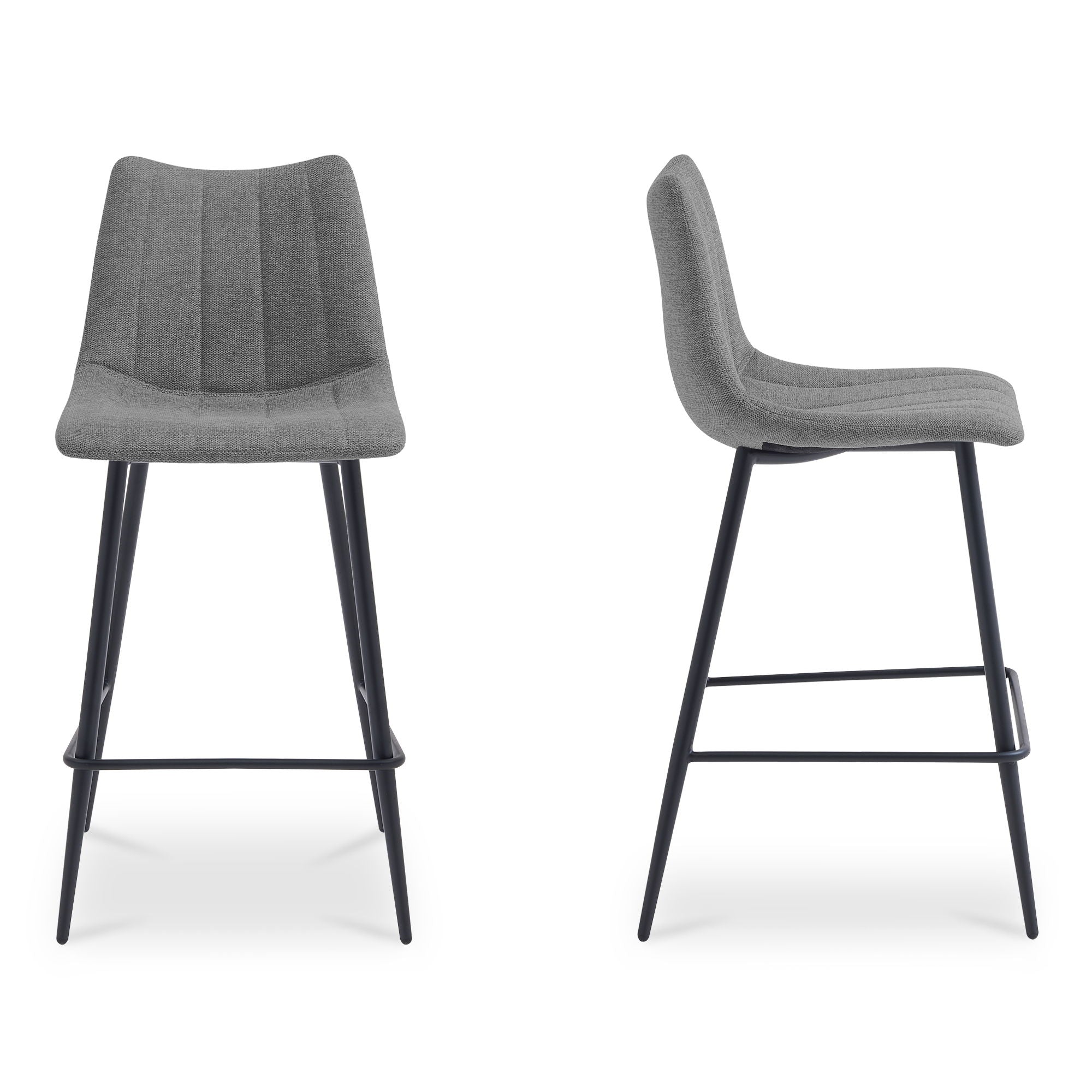 A contemporary bar stool that is as sleek as it is comfortable. The Alibi bar stool features striking vertical line stitches that add subtle detail to its monochromatic design. A soft easy to clean performance fabric seat adds comfort and classic appeal.