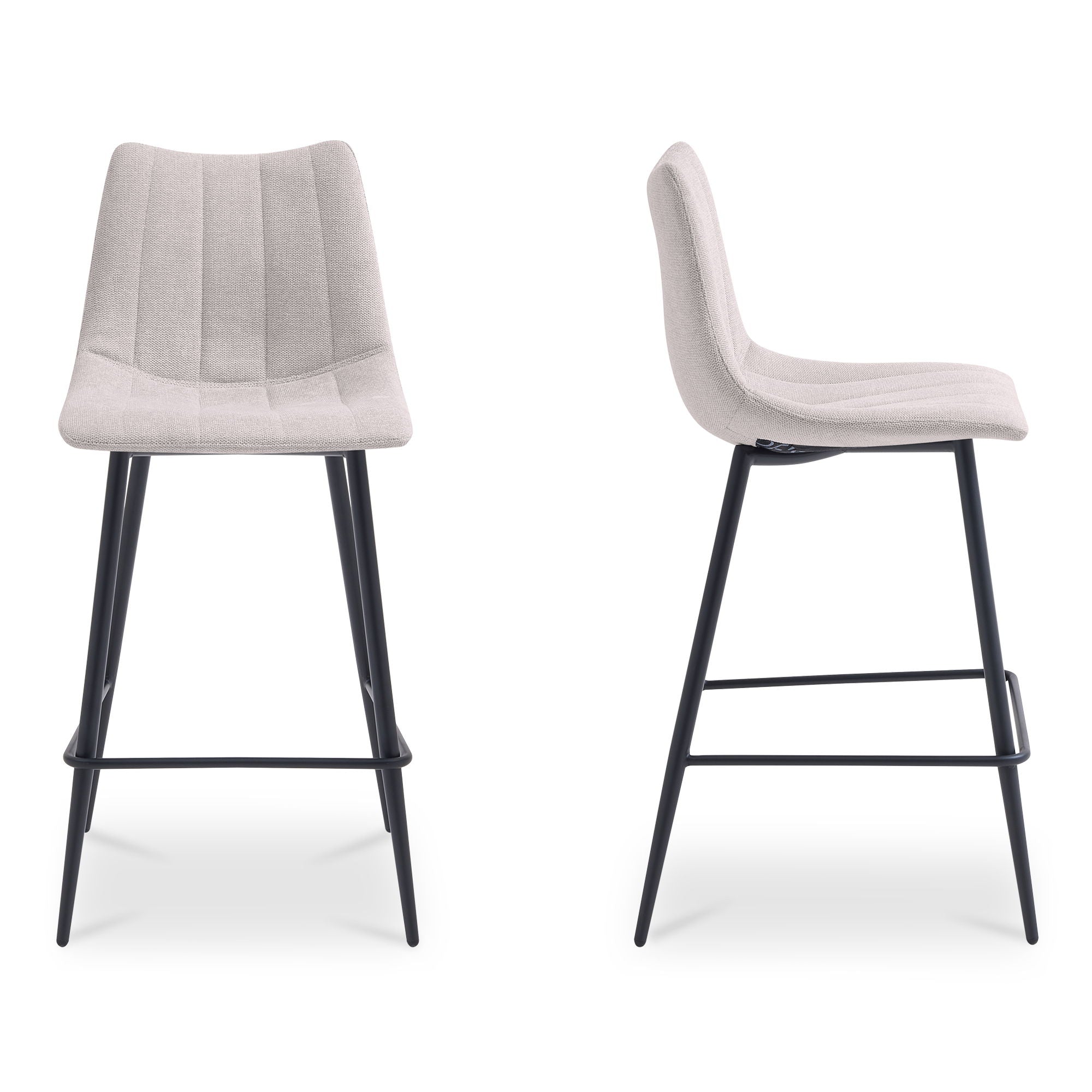 Contemporary modern counter stools get a new take with this sleek aesthetic. The Alibi counter stool features striking vertical line stitches that add subtle detail to its monochromatic design. A soft easy to clean performance fabric seat is shaped to fit for comfort so guests can relax at the island or bar