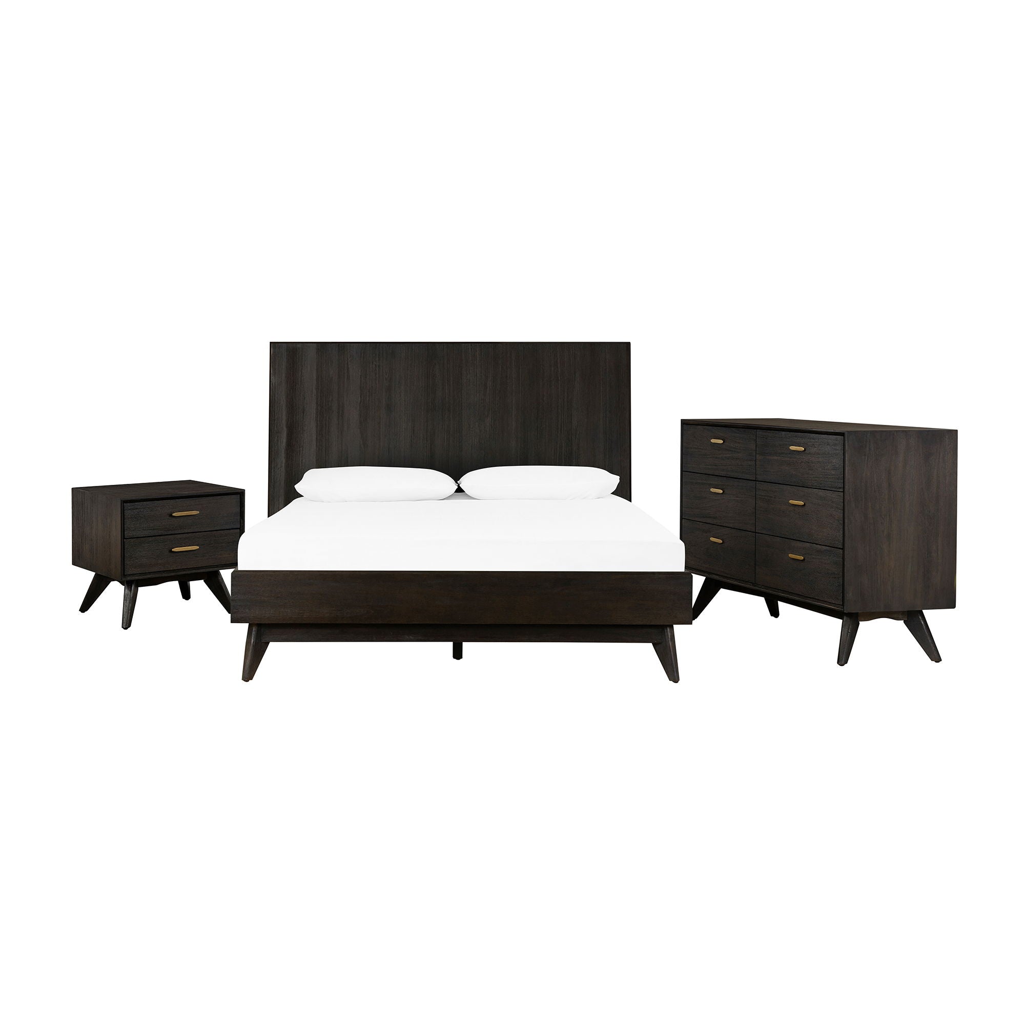 Baly - 3 Piece Acacia King Platform Bed And Nightstands Bedroom Set - Gray Sandblast Summer