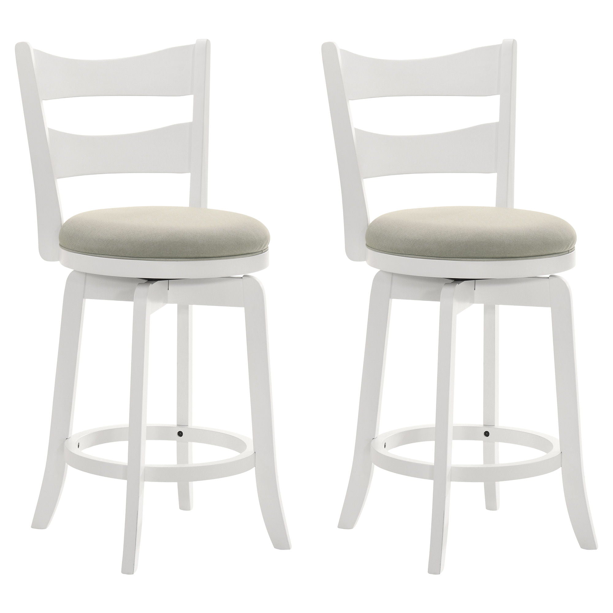 Blair - 26" Matte White Counter Height Rubberwood Swivel Barstool (Set of 2) - Fog Fabric Seat