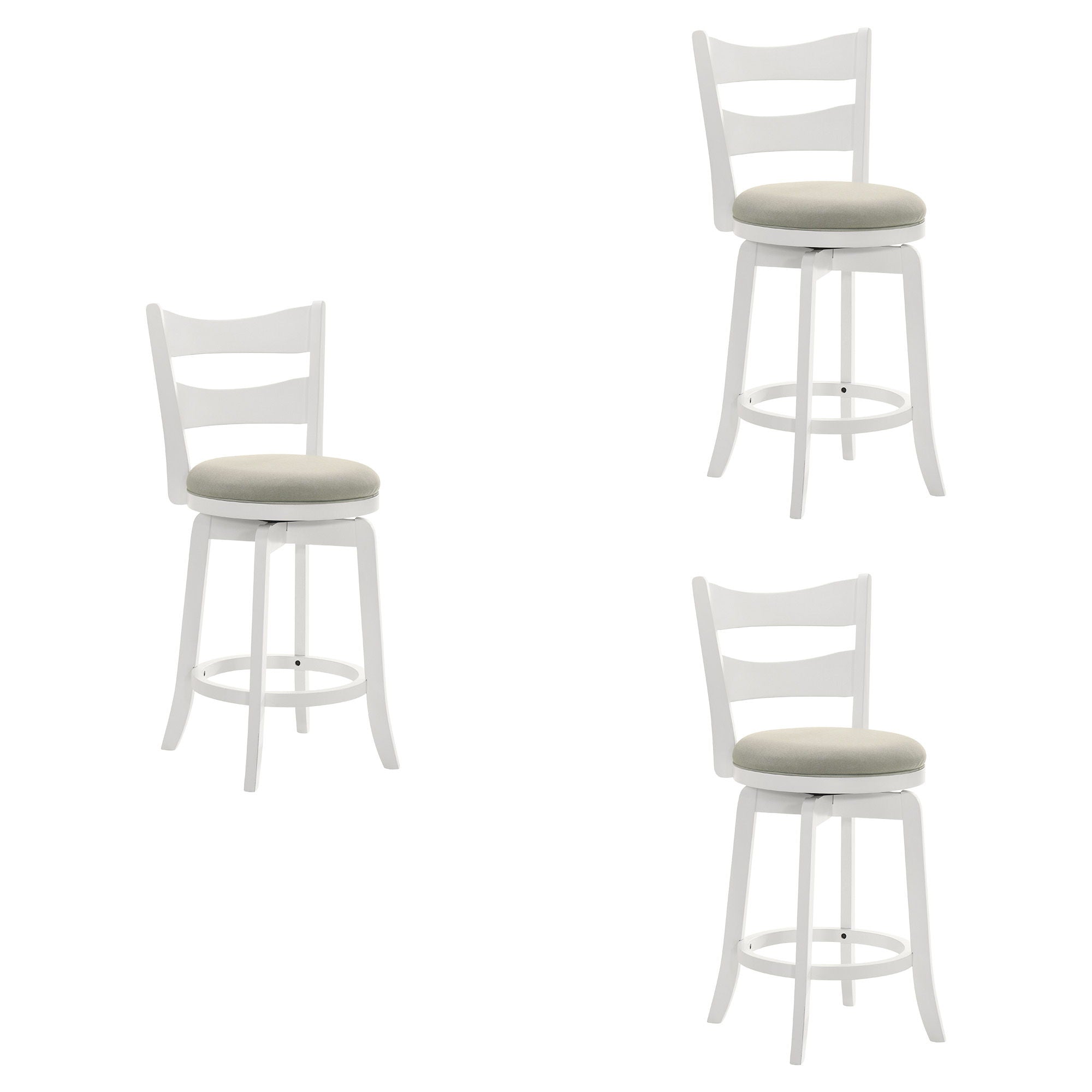 Blair - 26" Matte White Counter Height Rubberwood Swivel Barstool (Set of 3) - Fog Fabric Seat