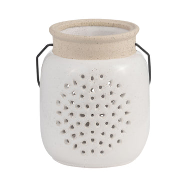 Ceramic 6" Flower Cut Out Lantern - Ivory