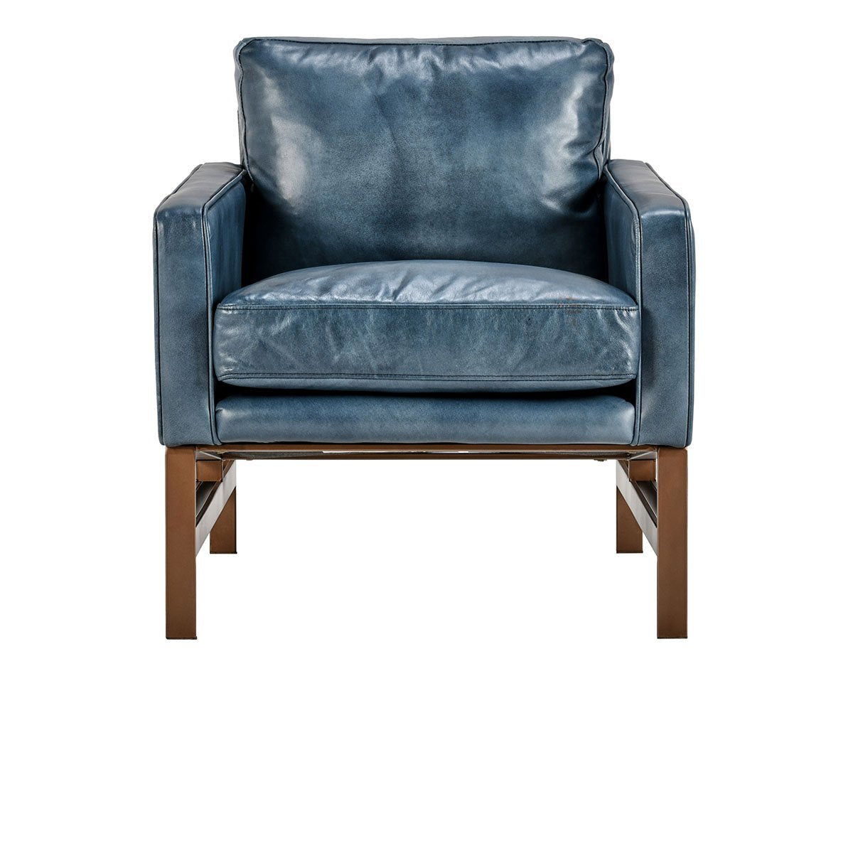 The Chazzie Armchair in Ocean Blue and Truffle Brown merges timeless sophistication with modern charm. Upholstered in rich leather, the chair offers a sleek, supple texture that pairs beautifully with its sturdy metal frame. The generously padded seat and back cushions ensure superior comfort, making it an ideal addition to your living room or study for both style and relaxation.